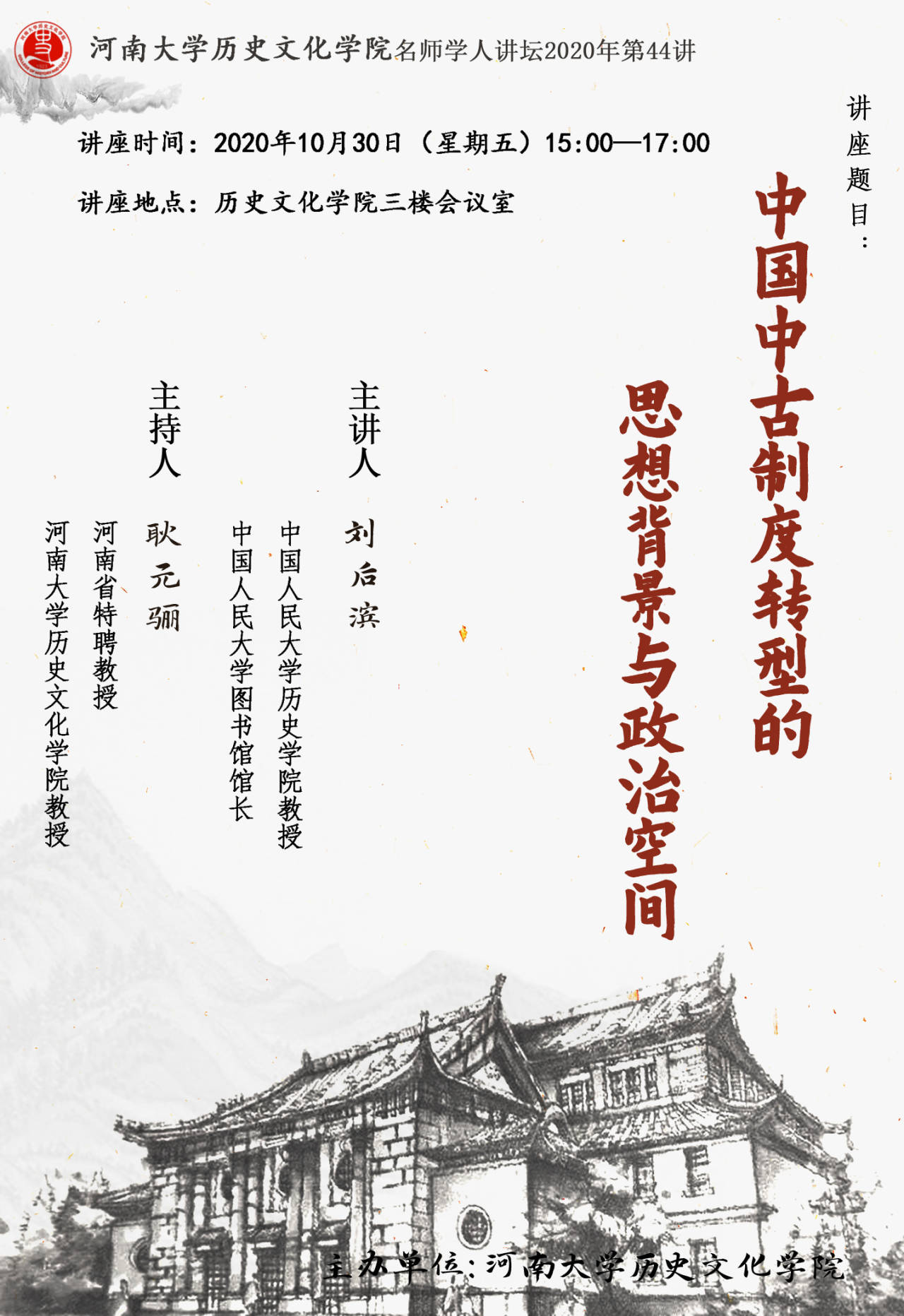 【讲座通知】刘后滨:中国中古制度转型的思想背景与政治空间