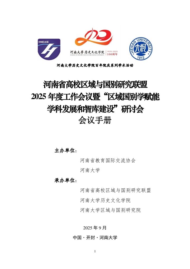 河南省高校区域与国别研究联盟2025年度工作会议暨“区域国别学赋能学科发展和智库建设”研讨会会议手册