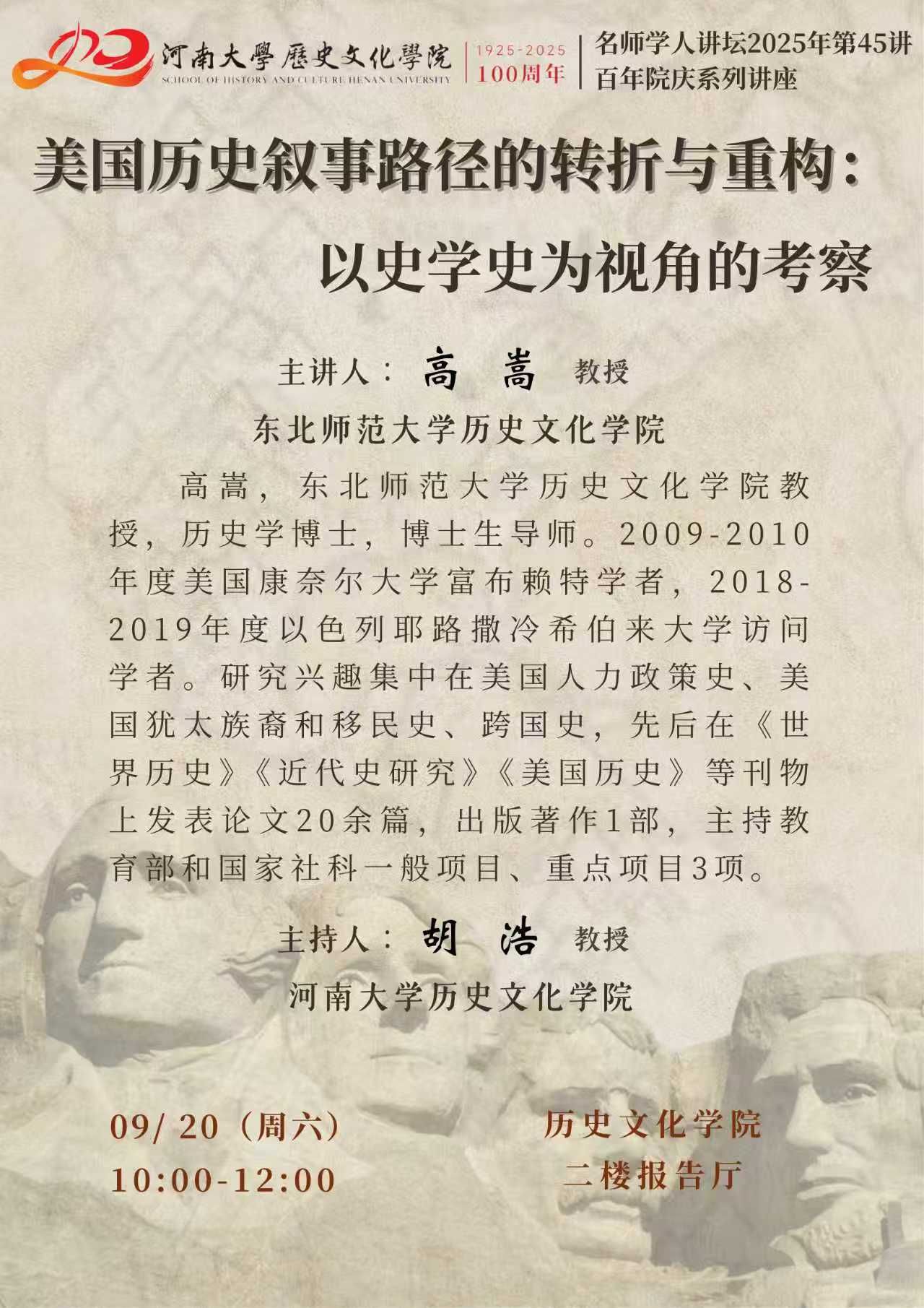 【讲座预告】高嵩:美国历史叙事路径的转折与重构:以史学史为视角的考察