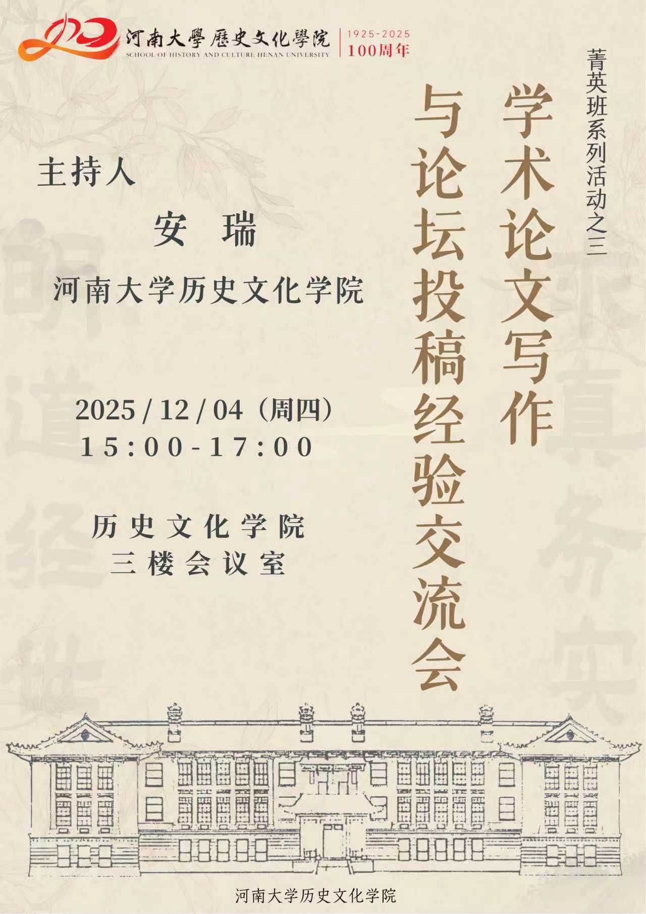 【讲座预告】菁英班系列活动之三:学术论文写作与论坛投稿经验交流会