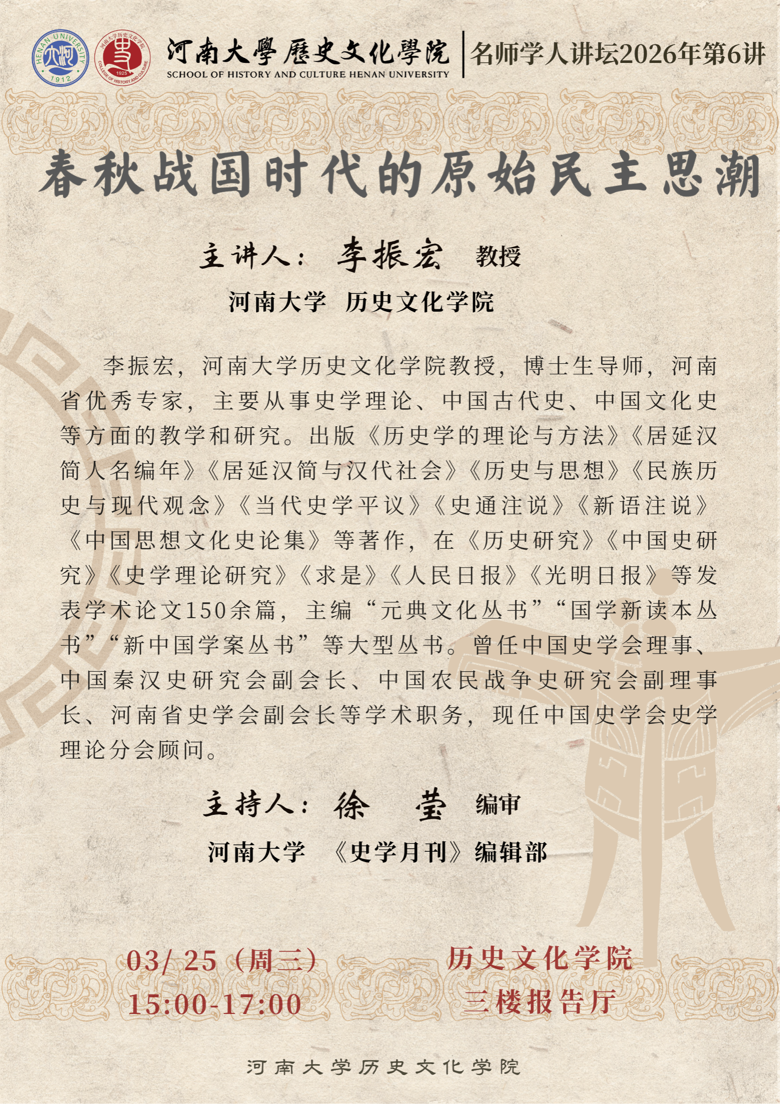【讲座预告】李振宏:春秋战国时代的原始民主思潮