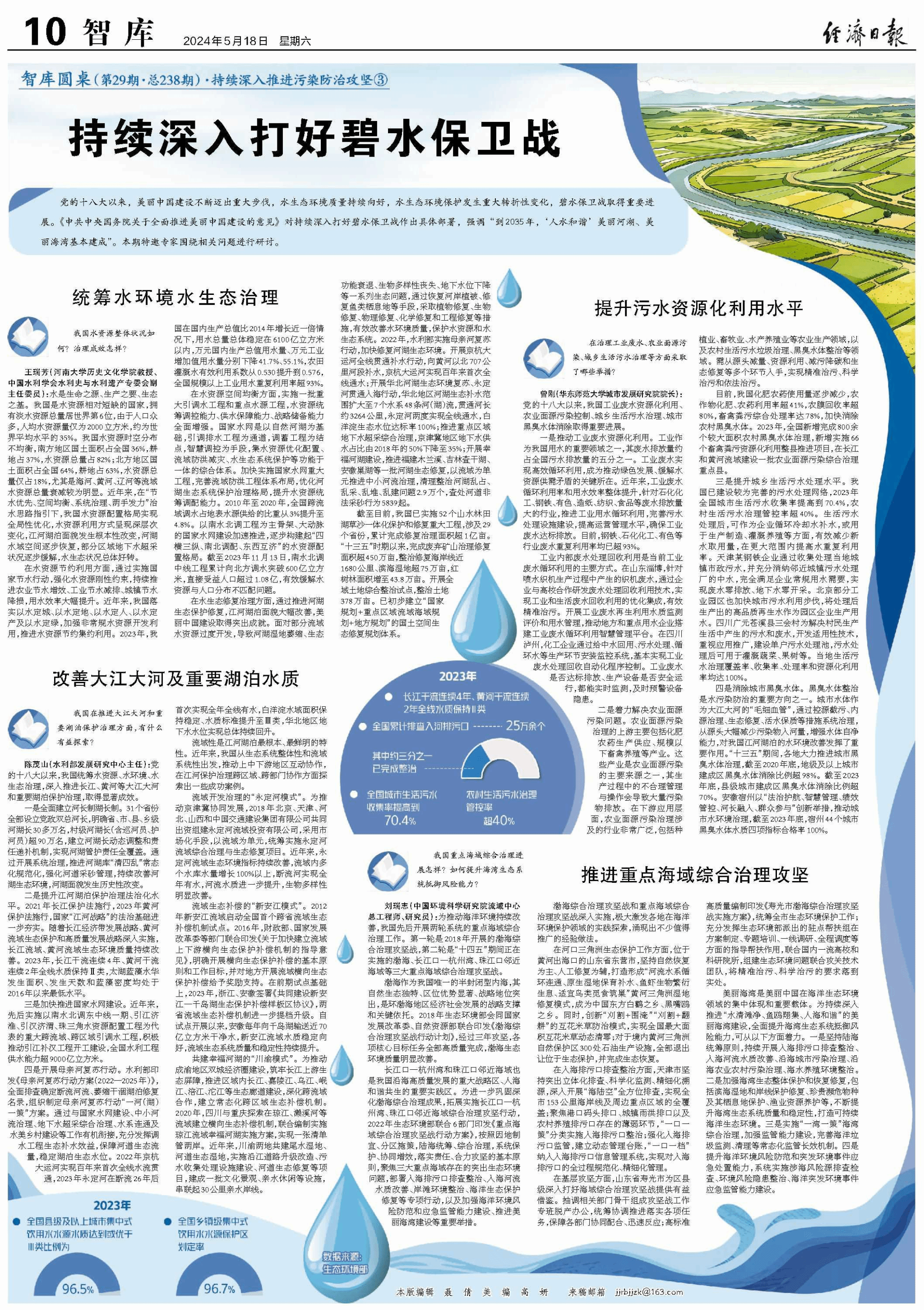 王瑞芳教授在《经济日报》2024年5月18日第10版发表题为《持续深入打好碧水保卫战·统筹水环境水生态治理》专题文章。