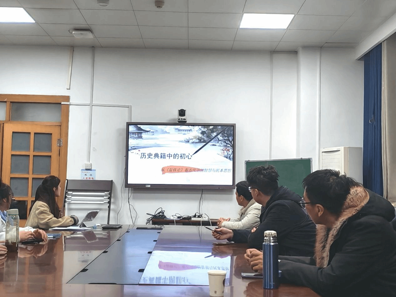 此次的分享活动中,支部党员朱云云以《盐铁论》为研读载体,在专业解读中感悟历史智慧,围绕《盐铁论》的历史背景与核心思想,查阅文献史料,深入剖析典籍中“义利之辨”“民惟邦本”等思想内核。《盐铁论》记录了西汉时期关乎国计民生的政策大辩论,其蕴含的“兼顾国家治理与民生福祉”“多元共治”等治理思想,与新时代党建工作要求高度契合。朱云云谈到,典籍中贤良文学之士为民生疾苦发声的担当、桑弘羊强化国家治理的务实,本质是“民富”和“国富”的永恒命题。我们党的回答是“以人民为中心”,这是古代治国理政智慧传承和发展,是马克思主义基本原理同中国具体实际相结合、同中华优秀传统文化相结合的生动体现。交流会上,大家围绕盐铁官营政策的利弊之争、汉代治国理念的碰撞融合等话题各抒己见,将专业知识与党性修养紧密结合,从“治国安民”的古代智慧中感悟新时代党员的使命担当。