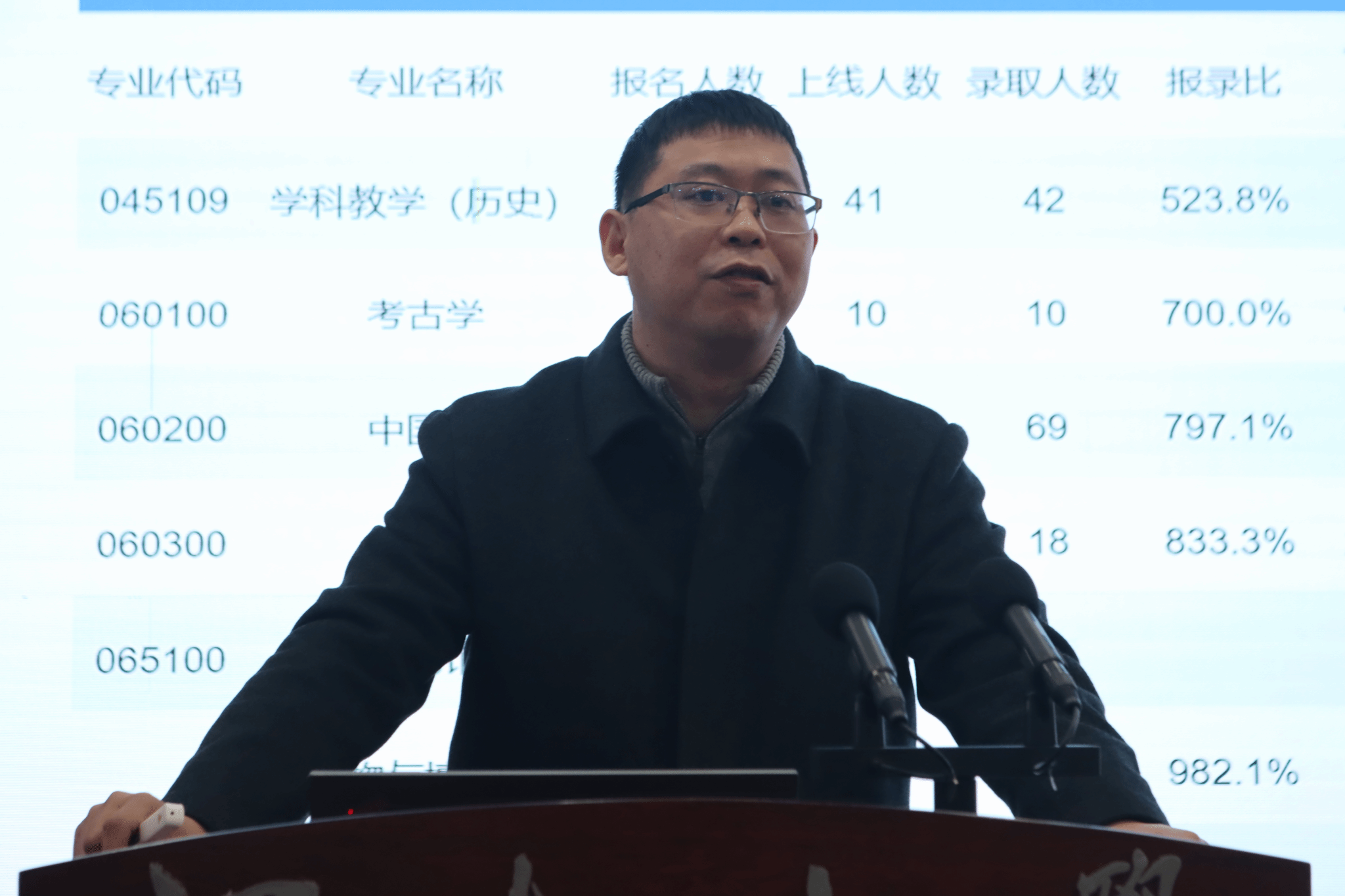 就业创业指导中心副主任栗晓文以“新时代历史学专业学生多元发展与就业赋能”为题,分析了当前高校就业创业形势。她谈到,近年来历史学专业毕业生就业呈现“学术深造稳中有升、应用领域持续拓宽、跨行业流动加速”的特点。传统文博、教育领域仍是主要就业方向,数字文旅、文化传播、档案管理等新兴领域的需求也明显增长。结合专业特点,她提出三点建议:一是加强“史学+”复合型能力培养,鼓励学生辅修数字技术、外语、管理等相关专业;二是搭建校地合作就业平台,与地方文旅部门、文博单位及中小学建立定向培养机制;三是完善就业指导体系,针对学术深造、考公就业、企业应聘等不同方向提供个性化支持,助力历史学专业学生实现多元发展。