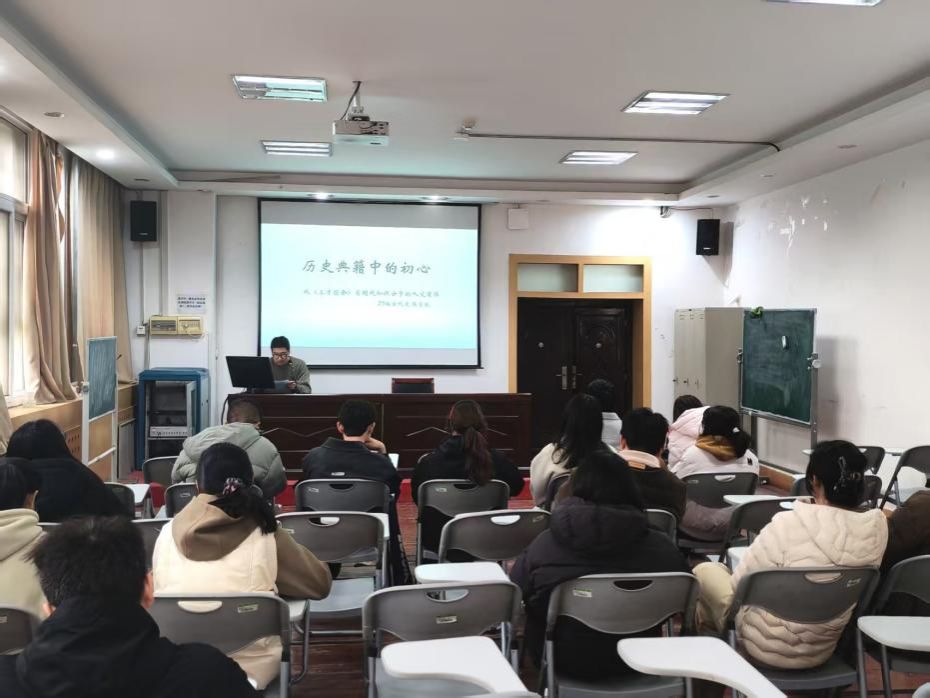 历史典籍中的初心作为硕士中国古代史专业党支部的特色活动,已连续举办多期,成为了新时代党员教育的创新载体,活动以“以小见大、见微知著”为核心特点,通过短时长、小切口的典籍研读阐述宏观理论,旨在提升党员教育的针对性和实效性。3月19日,历史典籍中的初心新学期第一讲正式拉开帷幕,党支部书记姜汉西首先回顾了过去一年活动开展情况,并对新学期活动充满了期待,寄予了厚望。2025级中国古代史党员张晋毓作为主讲人,以明代百科式图录类书《三才图会》为研读文本,围绕典籍编纂初心、内容特色与后世影响展开深度解读,带领大家从这部历史典籍中探寻明代知识分子的治学态度与务实精神。他表示,王圻因直言敢谏与宰辅张居正相左,仕途受挫后归隐故里,以“退而不隐”之志,将毕生所学融入著述,希望通过“图说”方式让世人“格物致知”,了解世间万物之理,体现了古代知识分子以学识回馈社会的深厚人文情怀,尽管时过境迁,依然为当代知识人提供着珍贵的精神资源。